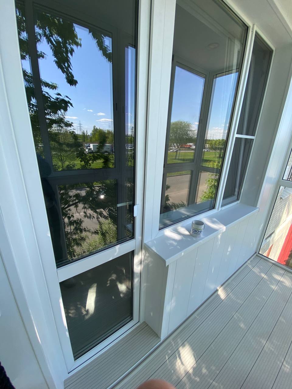 Балкон — это комната для работы или отдыха. Теплые окна, свет, розетки, теплый пол, радиатор отопления. Дизайнерские отделочные материалы